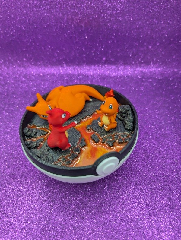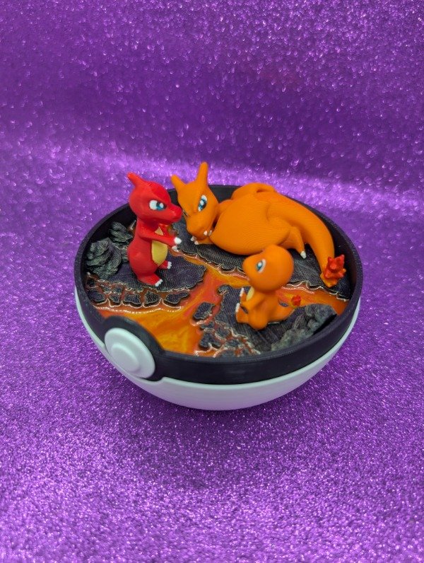 Diorama de las evoluciones de Charmander.