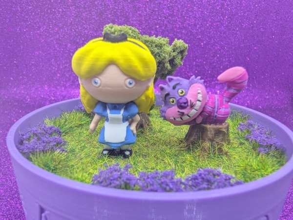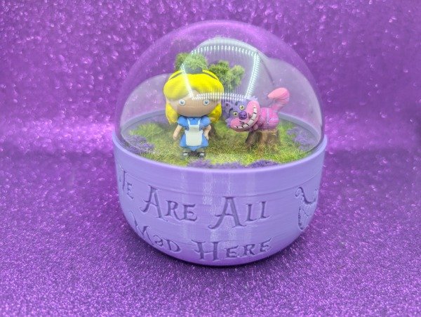 Mide 10 cm de diametro y 10 cm de alto aprox. Posee un acrilico transparente que recubre el diorama (Como se ve en la ultima foto)