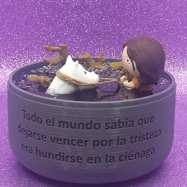 Diorama de Atrax y Atreyu de la historia sin fin.